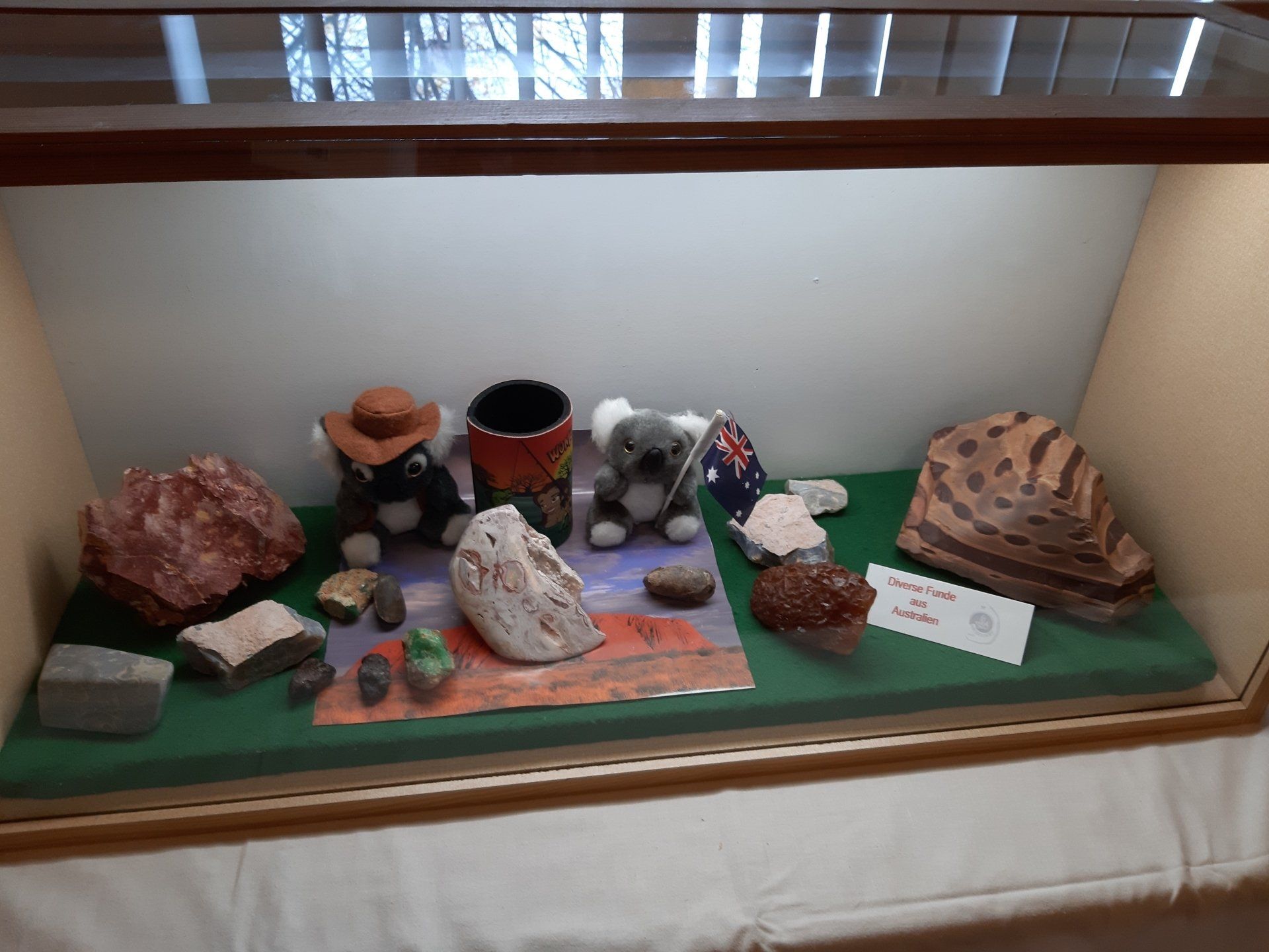 Schauvitrinen bei der MICHELDORFER Mineralien- und Fossilien-Börse 2019