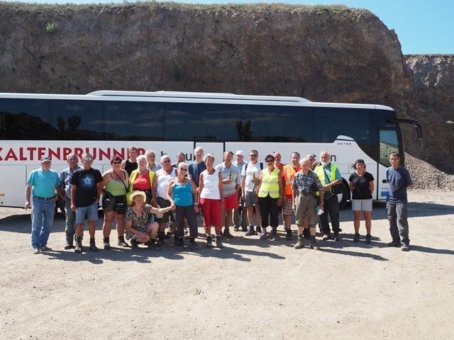 wunderschöne Exemplare von blauem Chalzedon……. Dafür mussten wir aber auch konzentriert suchen in der Halde und im Bach-Gelände, hämmern, meißeln und spalten in den Steinbrüchen. Sicherheitshelm, Warnweste, lange Hose und feste Schuhe waren streng vorgeschrieben, um dasGelände betreten zu dürfen. Danach das Schleppen der gefundenen Schätze zum Bus – wie immer ein ganz besonderes Ritual !